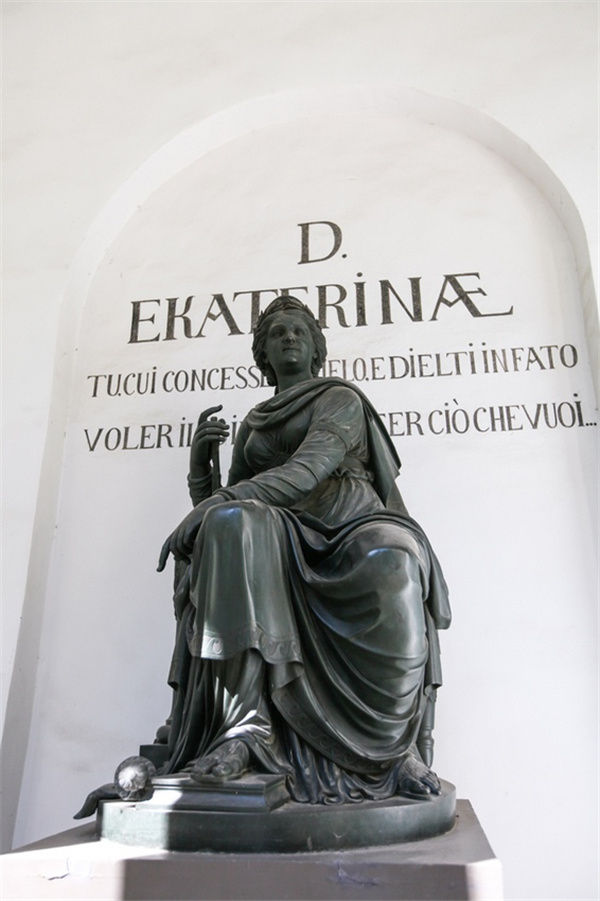 阶梯两侧摆满了各式各样的古希腊英雄的雕塑,有很多俄罗斯历史人物的雕像,包括