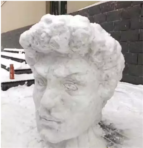 河北师范大学学生堆出的“大卫头像”雪人