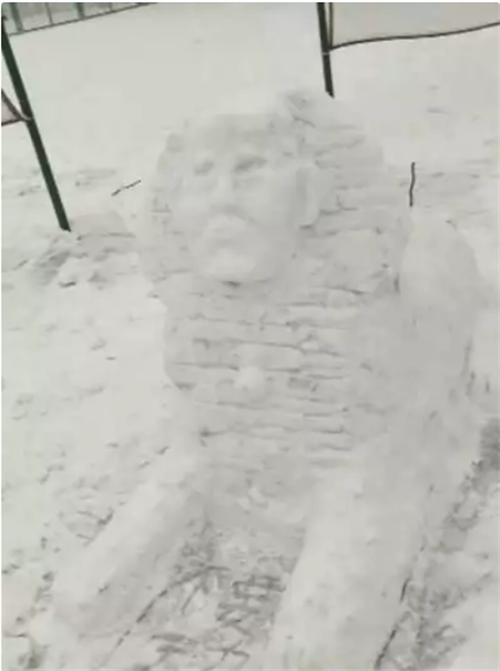北科技大学学生堆出的“狮身人面像”雪人