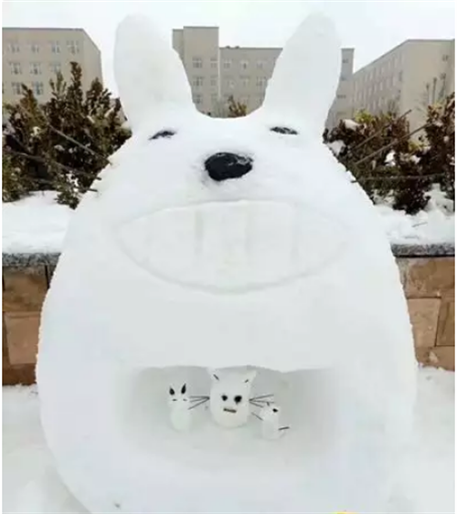 延安大学学生堆出的“龙猫”雪人