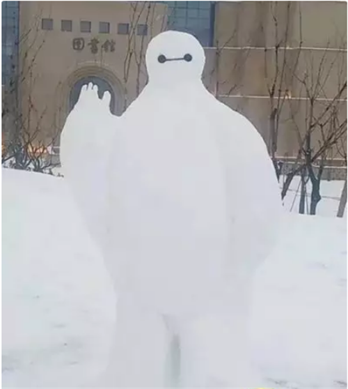 他们堆出狮身人面像、断臂维纳斯、大卫头像、多啦A梦、骷髅头、大白、龙猫、马桶等雪人。