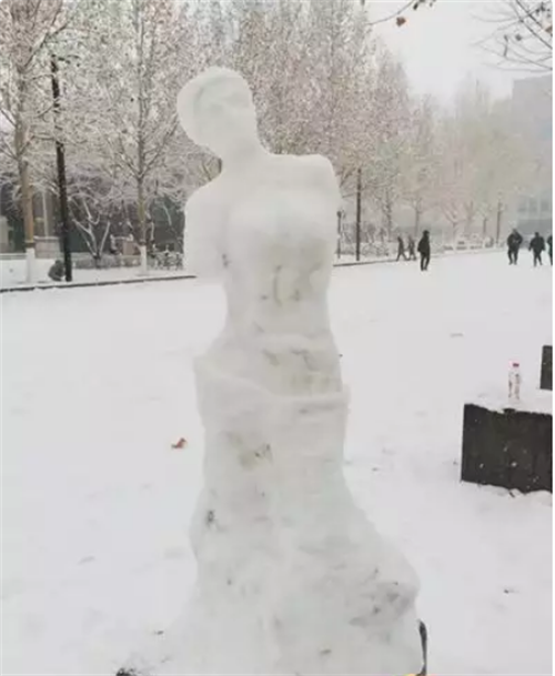 河北师范大学学生堆出的“断臂维纳斯”雪人