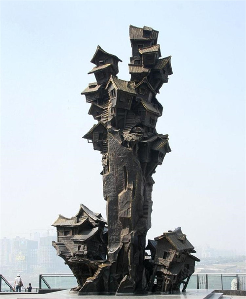 《记忆山城》完成于2005年,是一座高达13.8米的古铜雕塑。