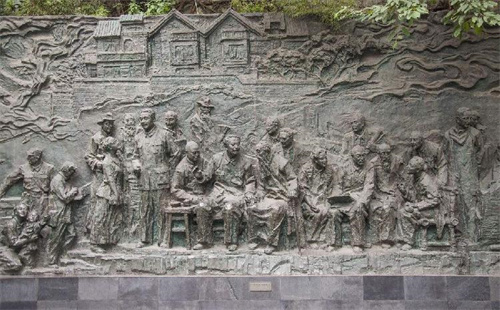 是以20世纪40年代重庆“特园”的史实为背景。这座雕塑镌刻着重庆的历史风云、