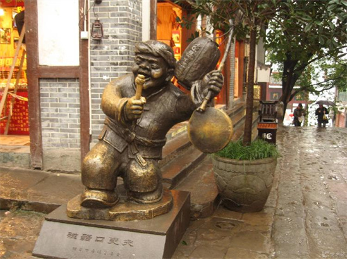 位于磁器口街头的更夫雕塑憨态可掬,深受游客喜爱,“更夫”左手举